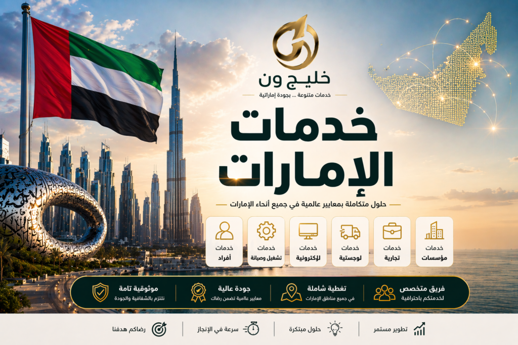 خليج ون يوفّر لك خدمات متنوعة داخل الإمارات بأسلوب بسيط وسريع. نساعدك في الوصول إلى الخدمة المناسبة دون الحاجة للبحث الطويل.